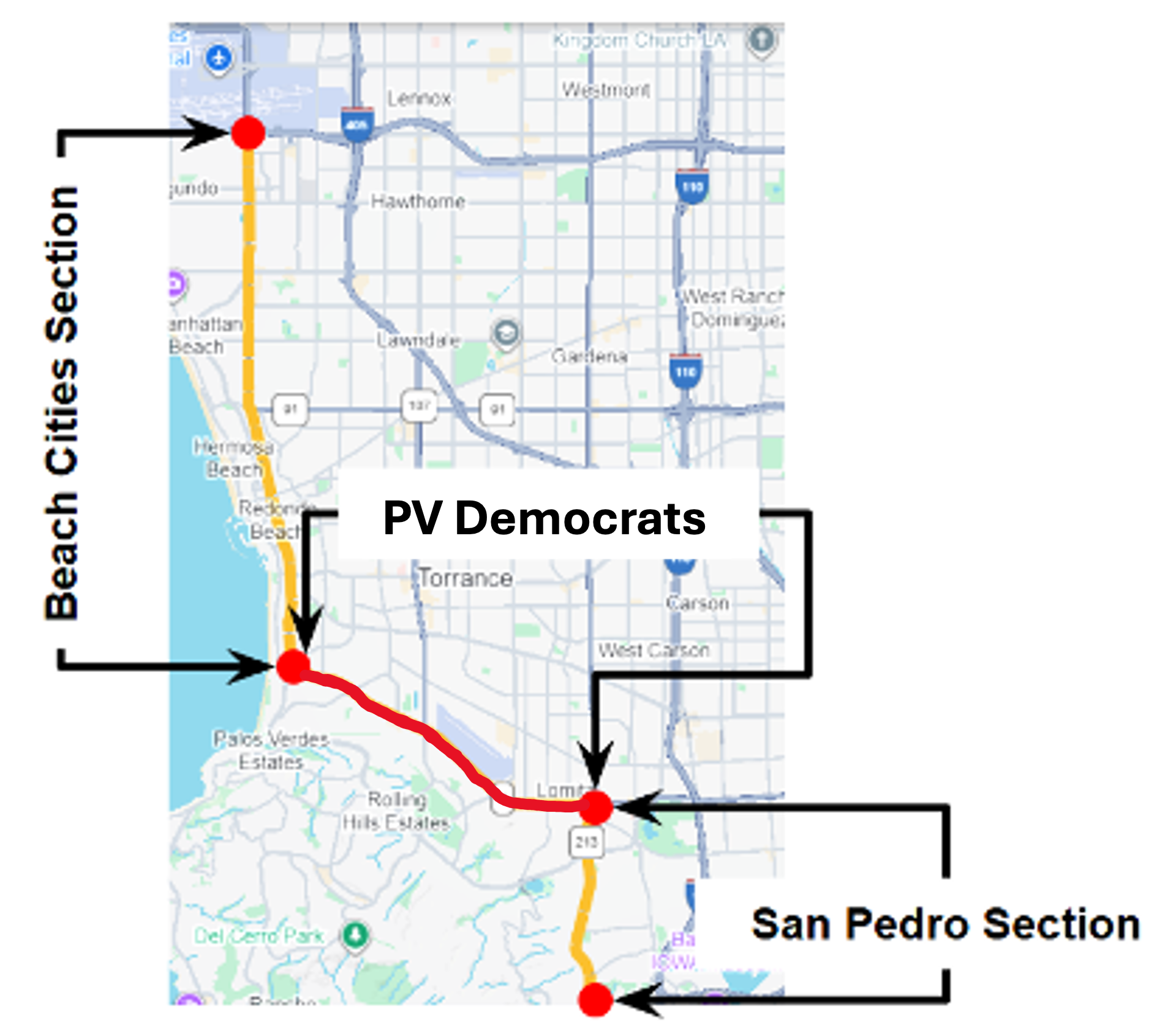 The Palos Verdes Democrats’ section will cover Pacific Coast Highway from Western Ave to Palos Verdes Blvd.